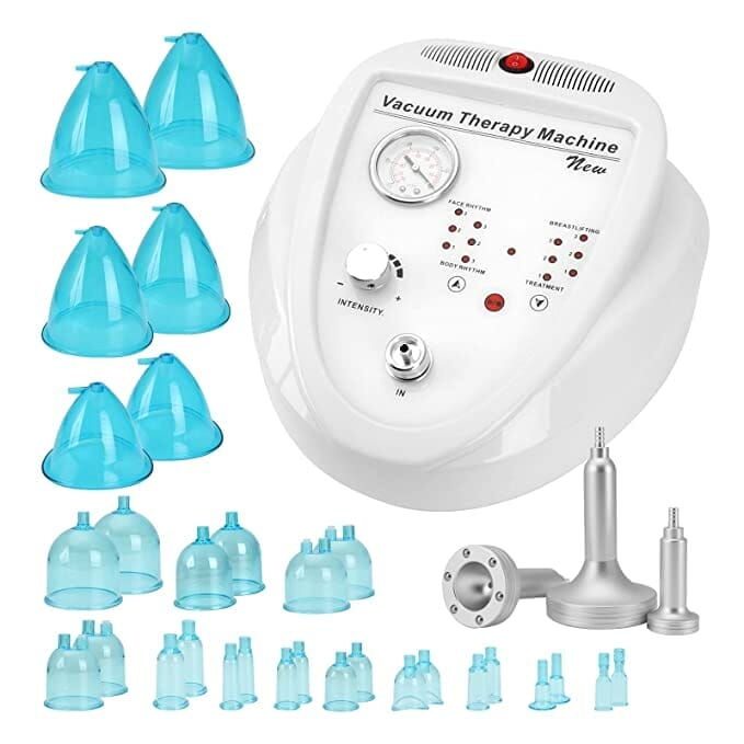 Esta máquina de terapia al vacío viene equipada con 30 tazas y 3 cabezales de masaje de metal para adaptarse a las necesidades de diferentes partes del cuerpo. Los distintos tamaños y formas de las tazas ofrecen funciones específicas, desde masajear nalgas, manos, labios, cuello y espalda, hasta tratar otras áreas del cuerpo.
